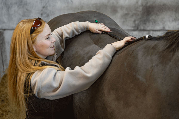 Thorough In-Person Horse Assessment: Complete conformation evaluation, back palpation, static evaluation of current saddle fit, and assessment of muscle development and asymmetries.